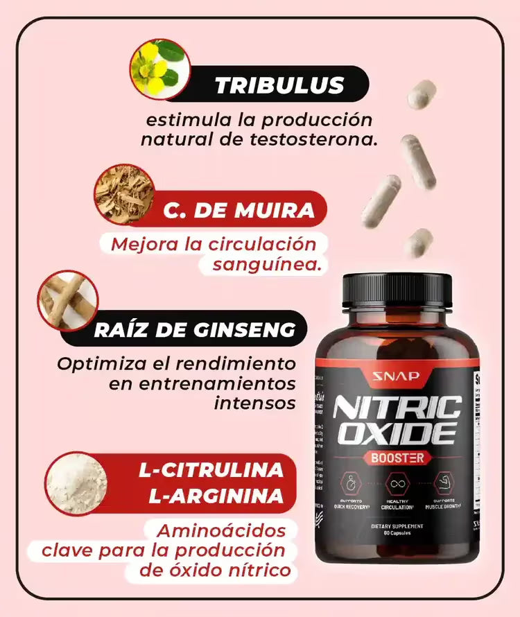 ¡Increíbles bombas y aumento de energía! He estado usando el óxido nítrico durante algunas semanas y ya puedo ver una gran diferencia en mis entrenamientos.Es increíble, siento más energía y resistencia durante el entrenamiento. También ayudan al flujo sanguíneo y a la circulación, algo que realmente noto durante mi recuperación. Me encanta que actúe rápido y no me cause molestias estomacales. ¡Muy recomendable para cualquiera que quiera llevar su rendimiento al siguiente nivel!